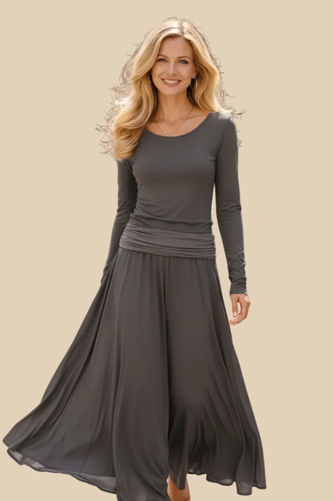 Verleihen Sie Ihrem Look Ausdruck und Raffinesse mit einem Kleid, das feminine Eleganz und modernen Komfort vereint. Jedes Design wird aus sorgfältig ausgewählten Materialien gefertigt und schmiegt sich angenehm an die Haut – fließend, edel und mühelos elegant.